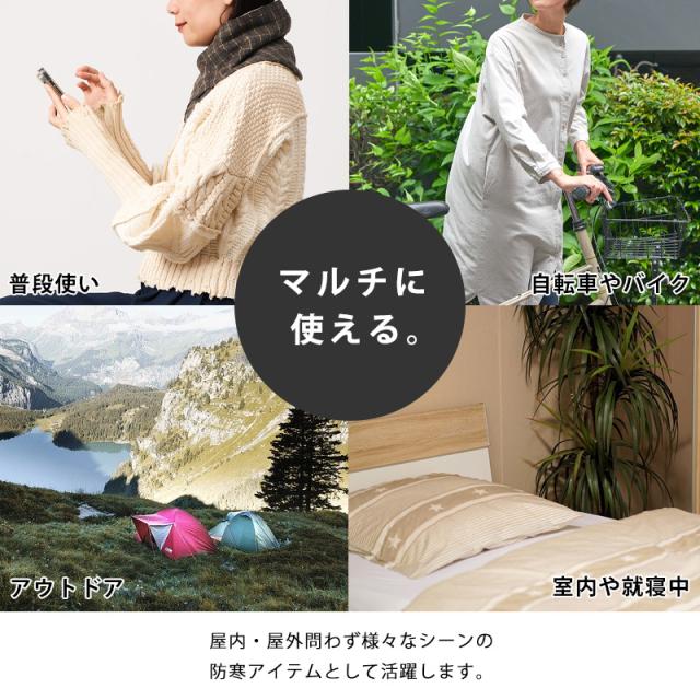 シンプルなデザインなので男女問わず使いやすく、マフラーのように長くないので持ち運びもコンパクトで便利。折りたたんで収納できます。