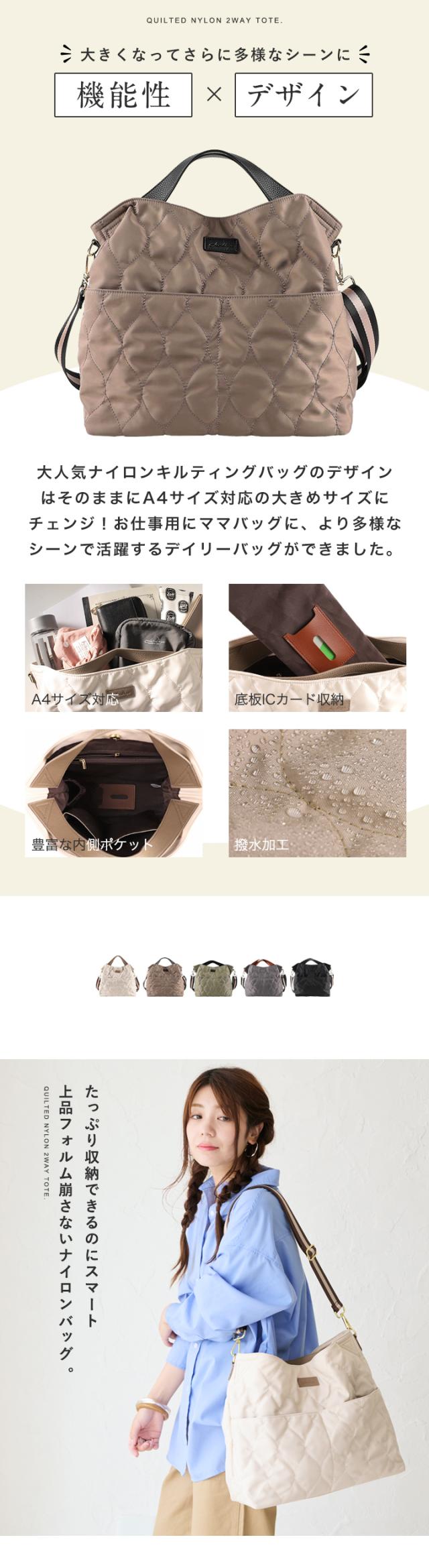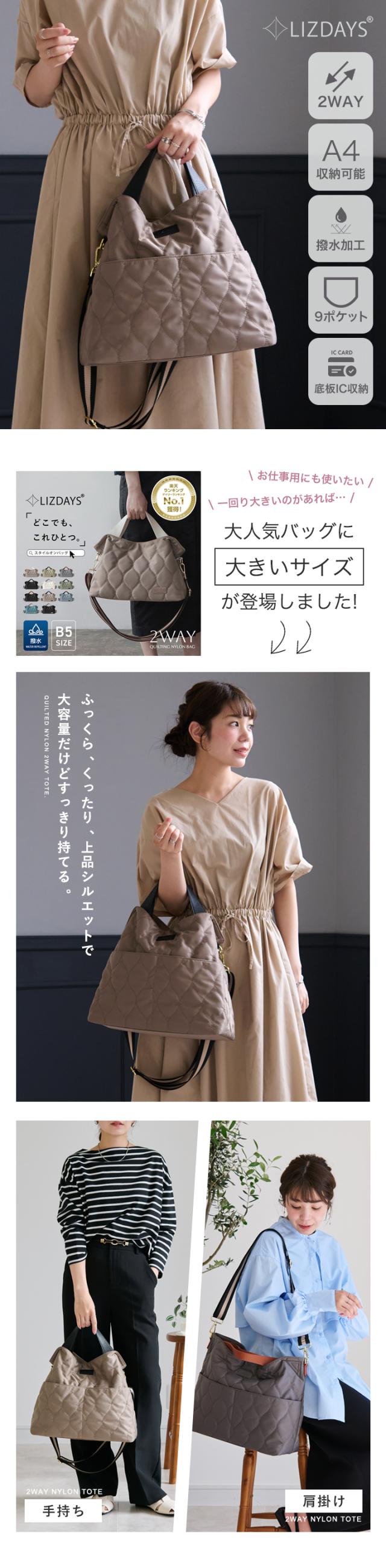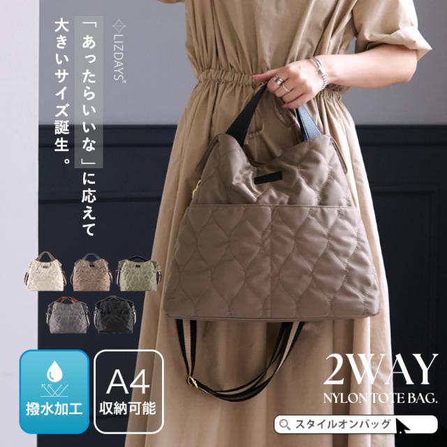 トートバッグ レディース ナイロン 軽量 ショルダーバッグ ななめ掛け 大人 キルティング 撥水 はっ水 ハンドバッグ 大きめ 2way 多収納 マグネット シンプル 通勤 通学 女性 A4 かわいい おしゃれ きれいめ シンプル LIZDAYS リズデイズ【lz-71508】