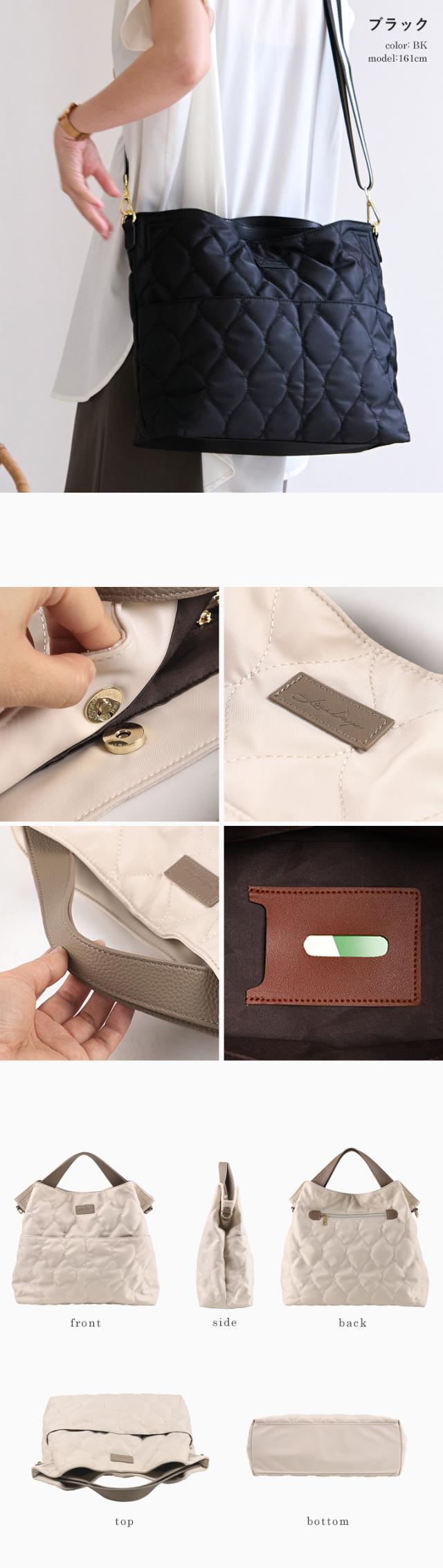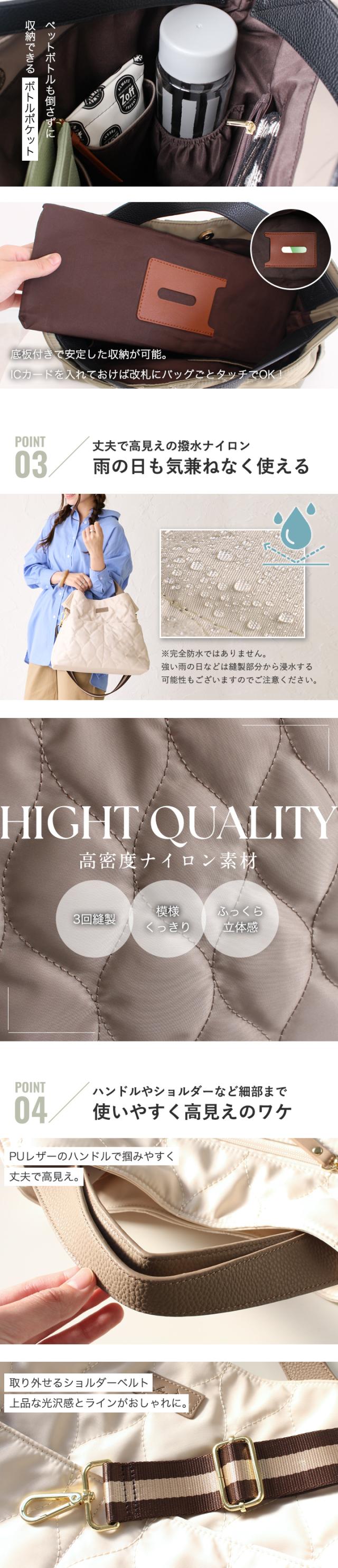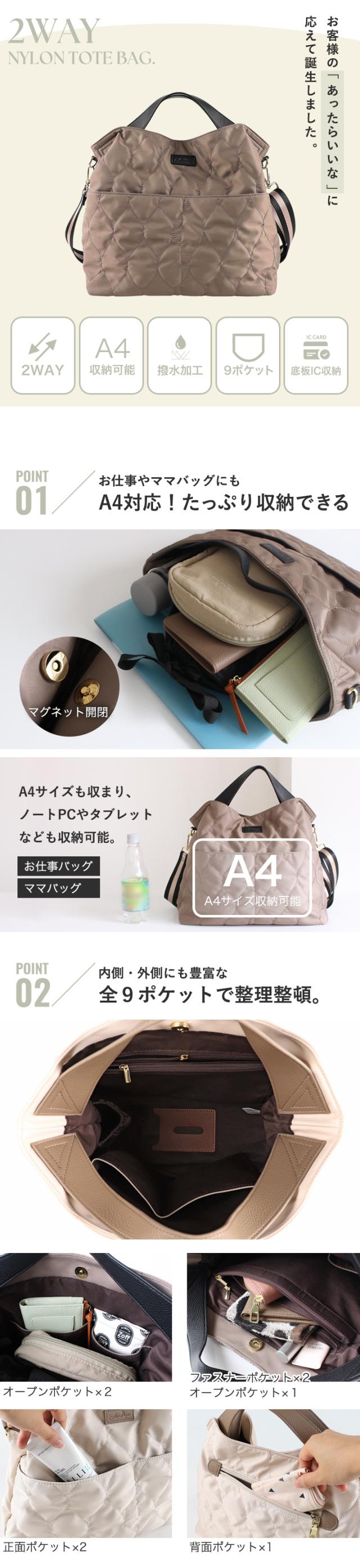 トートバッグ レディース ナイロン 軽量 ショルダーバッグ ななめ掛け 大人 キルティング 撥水 はっ水 ハンドバッグ 大きめ 2way 多収納 マグネット シンプル 通勤 通学 女性 A4 かわいい おしゃれ きれいめ シンプル LIZDAYS リズデイズ【lz-71508】