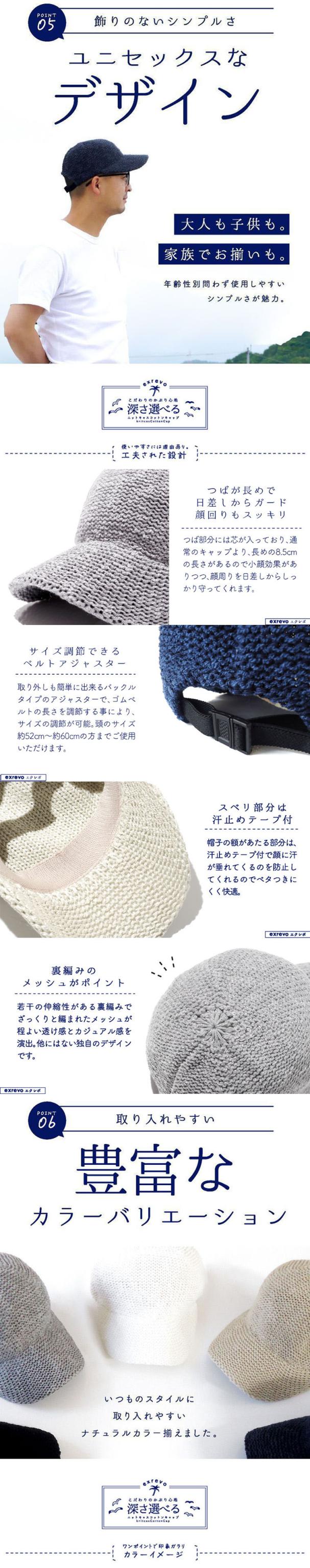 長めのツバでかぶるだけで、 頭皮から顔回りまで紫外線をしっかりガード。