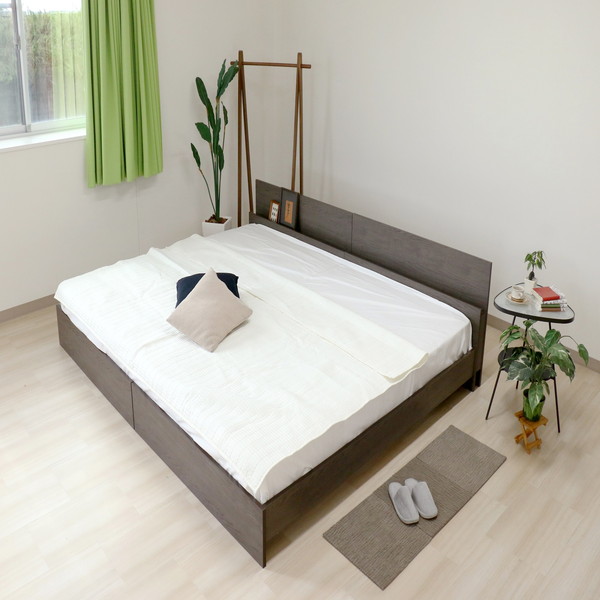 ヘッドキャビネットに照明が付いている、スタイリッシュなデザインベッド。ヴィンテージ風の色合いがとてもおしゃれ!このベッドの最大の特徴は各サイズの様々な組み合わせによる全13種類の豊富なサイズ展開です。通常連結タイプのベッドによくある、寝ている間にマットレスがズレて使いにくい現象も解決する独自の構造のベッドフレームです。