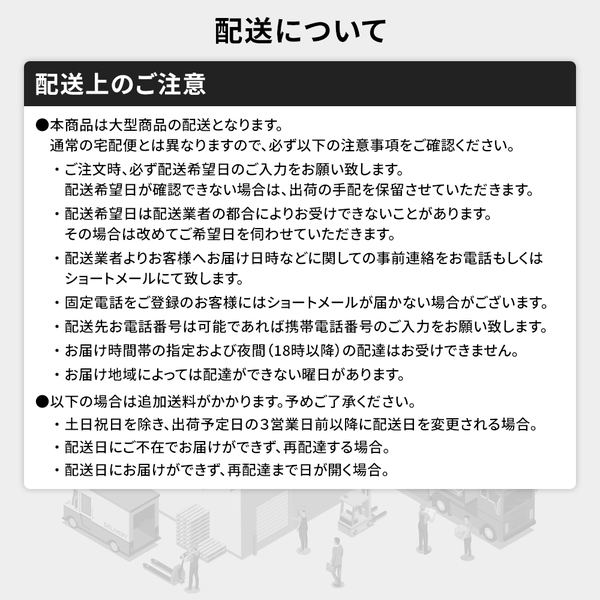 ・本商品は大型商品の配送となります。通常の宅配便とは異なりますので、必ず以下の注意事項をご確認ください。
