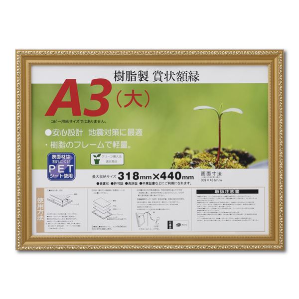 樹脂製 金色賞状額 金消 R SP A3 大) 整理 収納 寸法:318×440mm 賞状 額 表彰状 卒業証書 免許書 許可証 額縁 フレーム