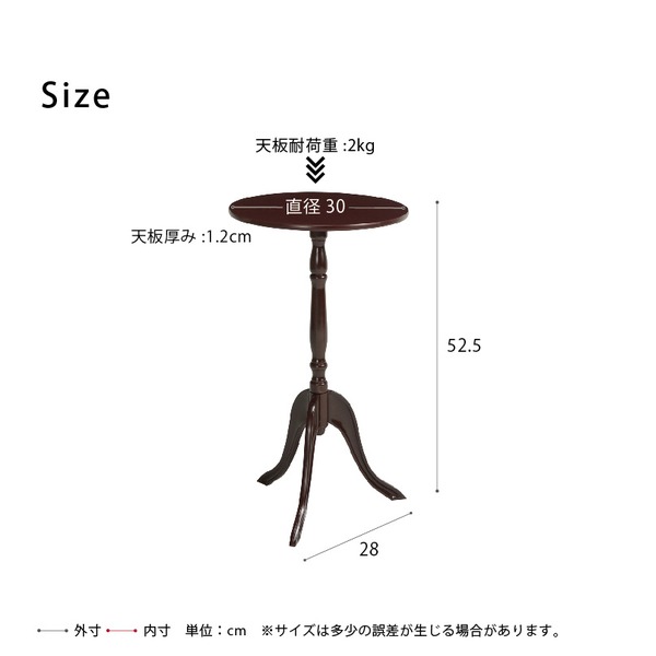 商品仕様: 【12個セット】 クラシックサイドテーブル(ダークブラウン 茶 こげ茶/茶) 幅30cm 丸テーブル/机/軽量/モダン/ロココ調/アンティーク/北欧/カフェ/飾り台/業務用/CTN-3030