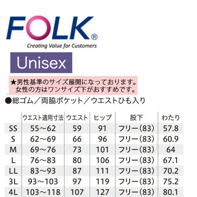 フォーク スクラブパンツ 5013SC ストレートパンツ 男女兼用 ウエストゴム仕様 医療 白衣 術衣 看護師 医療用 医師 歯医者 ユニフォーム クリニック 術衣 FOLK