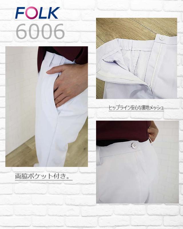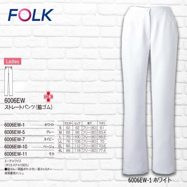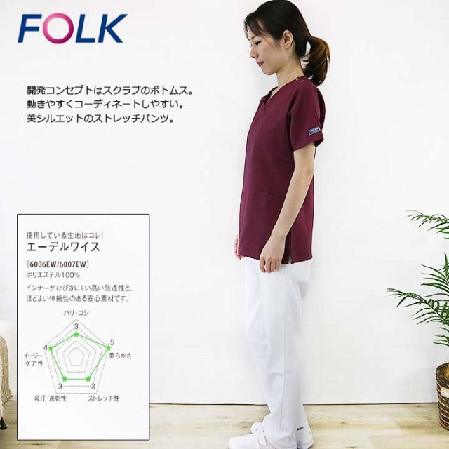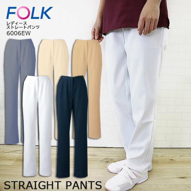 ストレートパンツ FOLK スクラブ パンツ 6006EW レディースストレートパンツ ユニフォーム 医師 医療用 看護師 白衣 クリニック フォーク