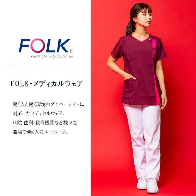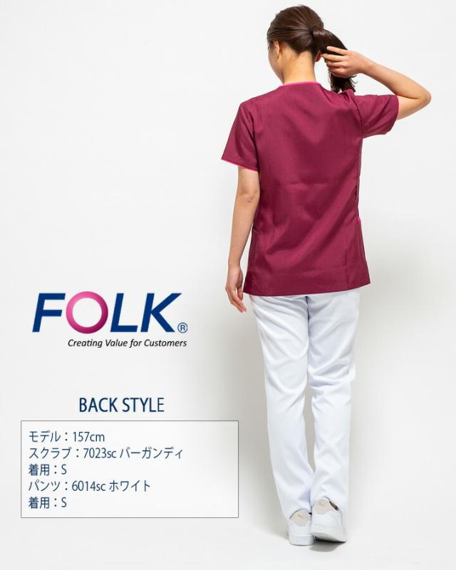 フォーク スクラブパンツ ストレートパンツ 白衣 医療用 FOLK 6014sc ストレッチ レディース パンツ ユニフォーム 医師 医療用 看護師 歯科 動物病院 リハビリ 介護 クリニック エステ服 フォーク 術衣 ネイビー ホワイト