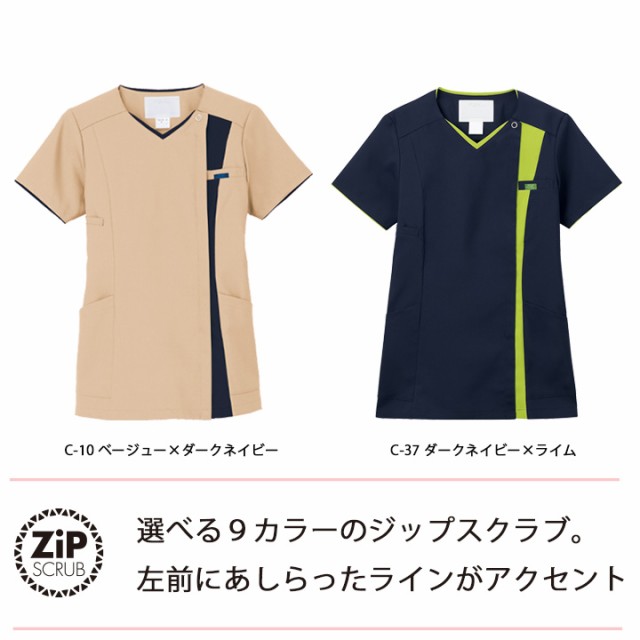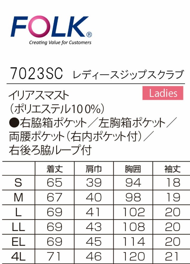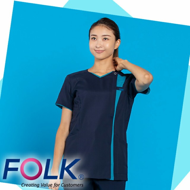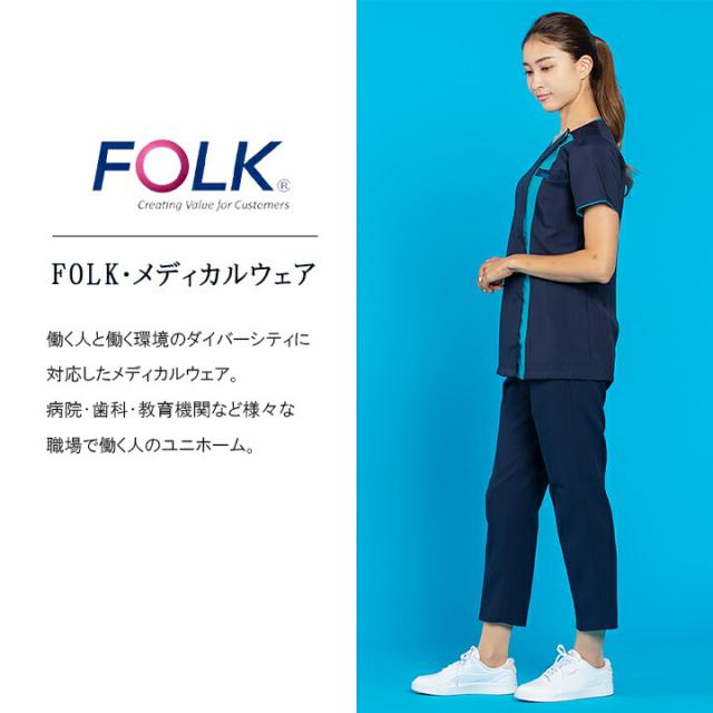 フォーク スクラブ 7023SC 羽織って着るジップスクラブ レディース 女性用 白衣 ユニフォーム 医師 看護師 医療用 クリニック 術衣 FOLK