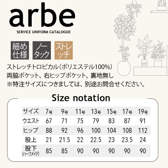 パンツ arbe アルベ AS-6813 レディース ストレッチ 細め仕様 ノータック ホテル カフェ 飲食店 サービス業 制服 レストラン ユニフォーム チトセ