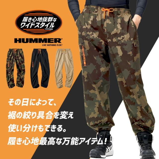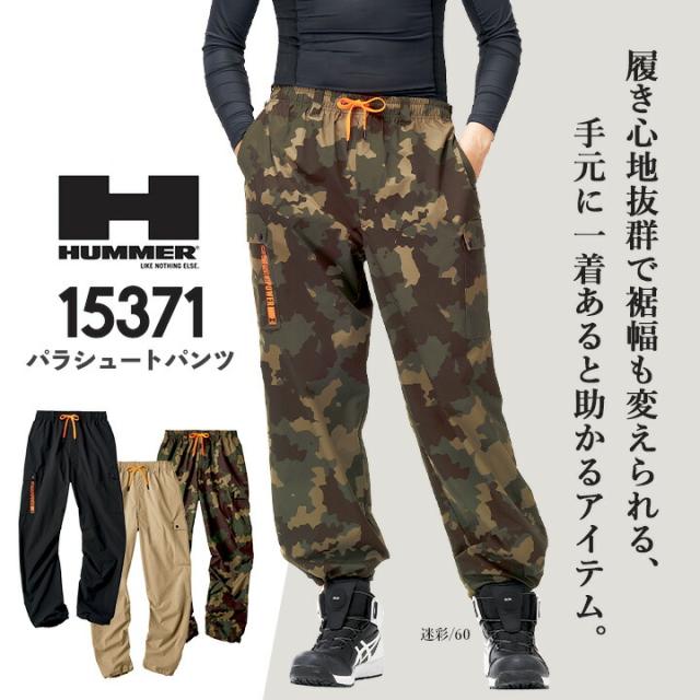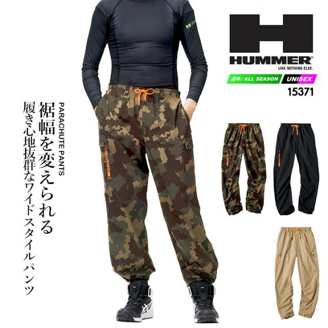 HUMMER ハマー パラシュートパンツ ワイド 裾調整 スピンドル ストレッチ 15371 春夏 秋冬 移動着 作業服 作業着 アウトドア キャンプ 自転車 アタックベース HUMMER