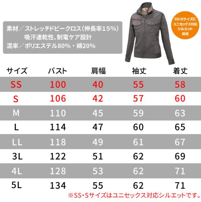 SS:バスト 100cm/肩幅 40cm/着丈 58cm/袖丈 55cm