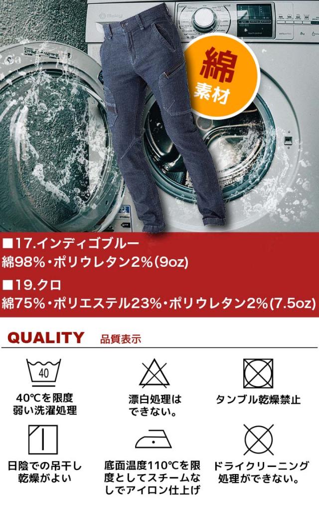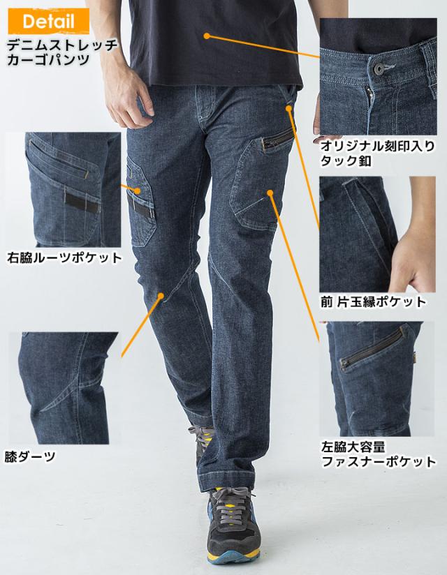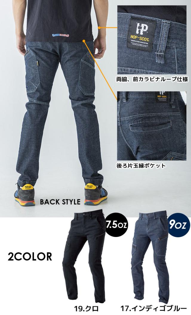 デニム カーゴパンツ 980015 HOP-SCOT 綿 ストレッチ メンズ ズボン 男性用 オールシーズン DIY 作業着 作業服 CUC 中国産業