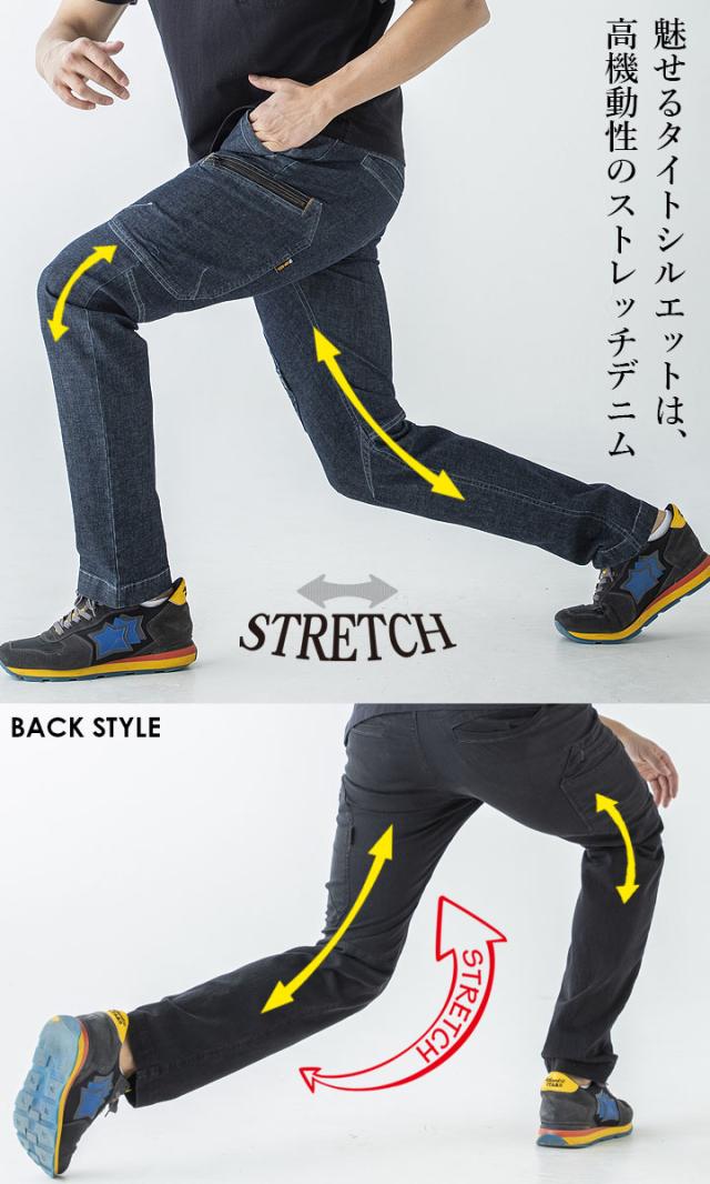 機動力を損なわず着用時のシルエットを追求するためストレッチデニム生地を採用!