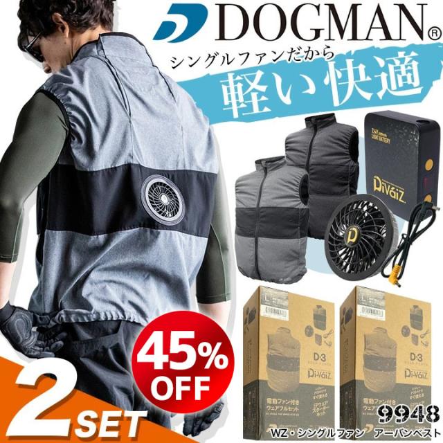 【19600円がなんと!65%OFF】2個セット【即日発送】空調服 ファン付き ベストセット 熱中症対策 シングルファン ファン&バッテリーセット 当店限定 ドッグマン 9948 スポーツ DIY アウトドア 猛暑 作業服 作業着 熱中症対策 中国産業
