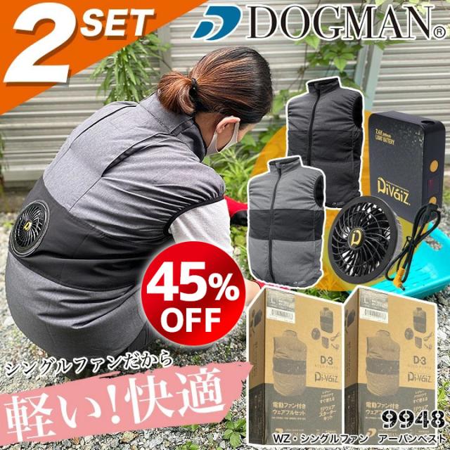 【19600円がなんと!65%OFF】2着セット【即日発送】ファン付きベスト セット空調ウェア 熱中症対策 シングルファン&バッテリーセット 当店限定 ドッグマン 9948 スポーツ観戦 DIY アウトドア レジャー 作業服 作業着 熱中症対策
