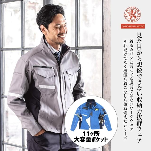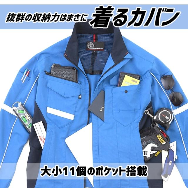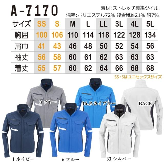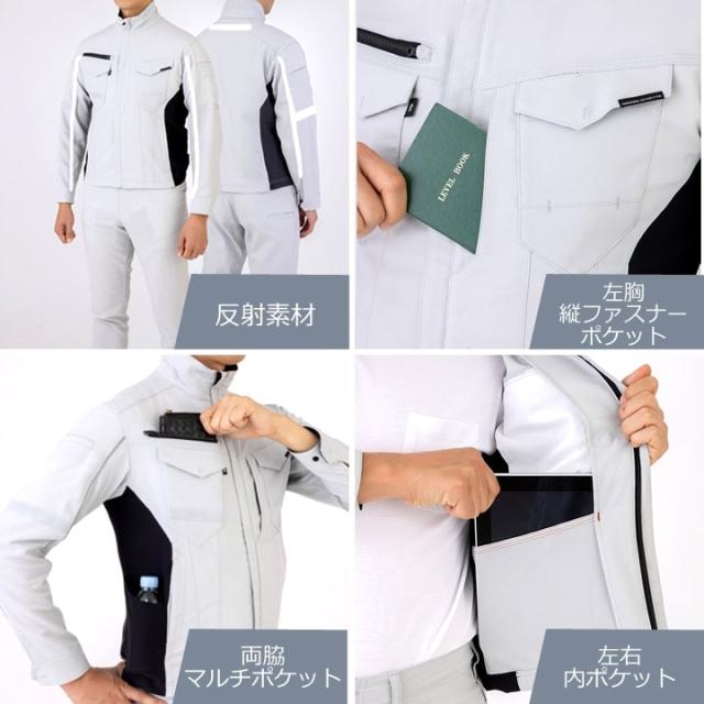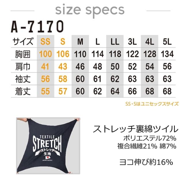 作業服 ストレッチジャケット 裏綿 A-7170 長袖 ジャケット ブルゾン ストレッチ 多収納 着るカバン 反射材 日本製素材 帯電防止 メンズ レディース 年間 秋冬 ユニフォーム 作業着 企業 制服 CO-COS 7170シリーズ