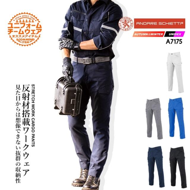 作業服 ストレッチカーゴパンツ 裏綿 A-7175 カーゴパンツ パンツ ズボン ストレッチ クライミングカット 反射材 日本製素材 帯電防止 メンズ レディース 年間 秋冬 ユニフォーム 作業着 企業 制服 CO-COS 7170シリーズ