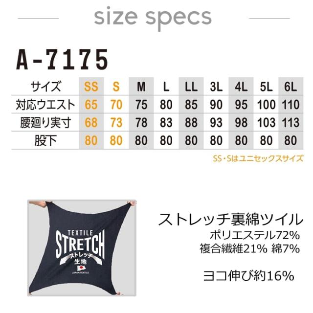 | A-7173 ストレッチワークパンツ | A-7175 ストレッチカーゴパンツ |
