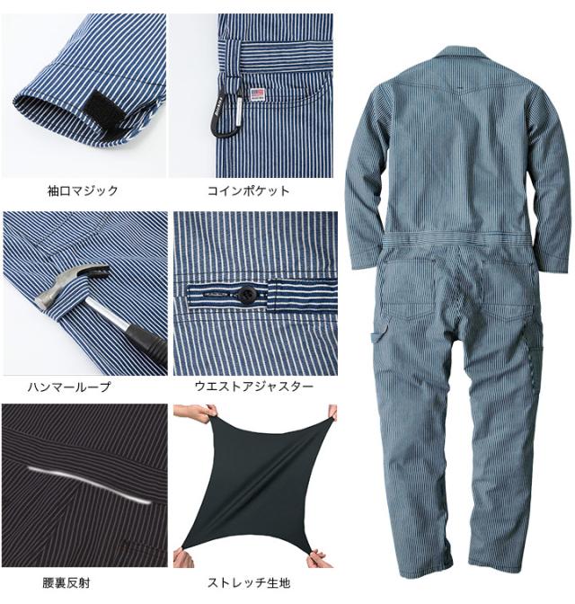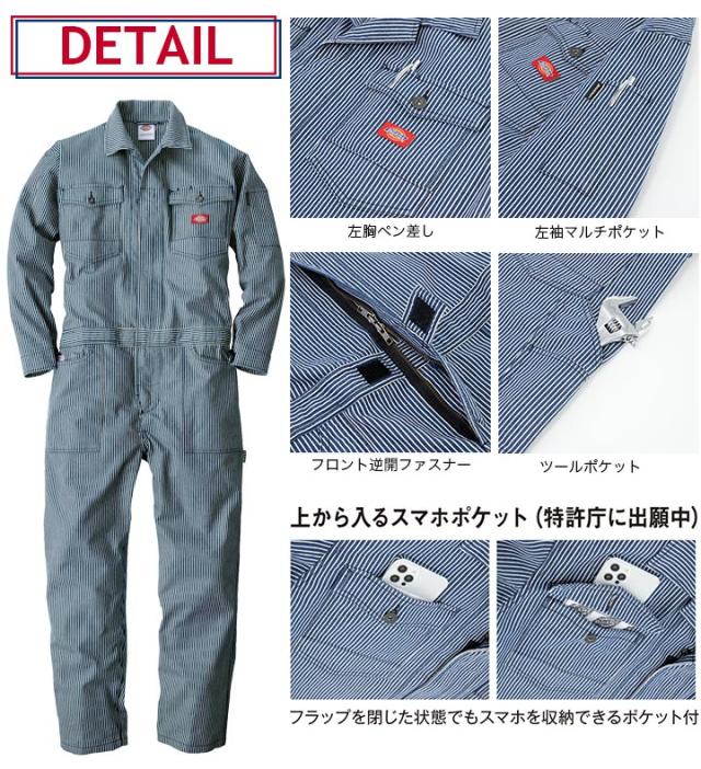 つなぎ ディッキーズ 長袖つなぎ ストレッチ ヒッコリー D-716 ツナギ オールシーズン 作業服 作業着 Dickies