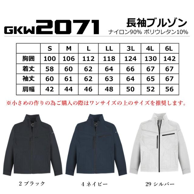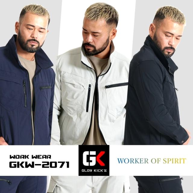 【即日発送】グローキックス 作業服 ストレッチ 長袖ジャケット GKW-2071 ストレッチワークウェア ジャケット ブルゾン 超ストレッチ 春夏 秋冬 ユニフォーム 現場 職人 作業着 GLOWKICKS ケイゾック