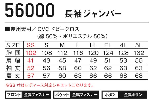 ジャウィン JAWIN 長袖ジャンバー 56000【春夏】作業服 作業着 ユニフォーム 自重堂 ジャケット 56000シリーズ