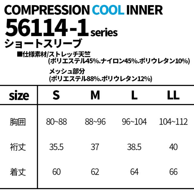 ジャウィン 半袖インナーウェア 56114-1【春夏】 jawin 自重堂【インナーシャツ】 アンダーシャツ コンプレッション【送料無料】【即日発送】