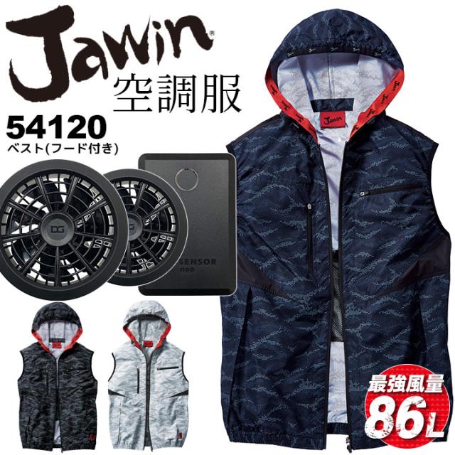 【即日発送】空調服 ジャウィン ベスト フード付き フルセット 54120【バッテリー&ファンセット KS-100D 】【Max15V 風量86L】アウトドア カモフラ 熱中症対策 自重堂 作業着 作業服【M-3L】