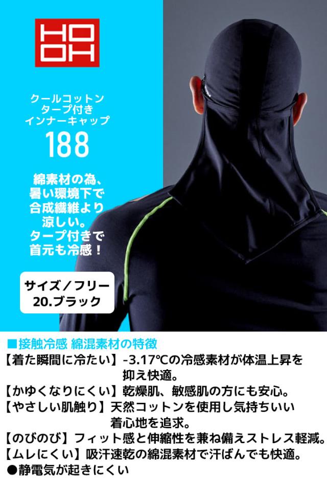 【即日発送】ヘッドキャップ タープ付きインナーキャップ 冷感 夏用 クールコットン 綿生地 HOOH 村上被服 188 UVカット ストレッチ 作業着 作業服 スポーツ 鳳皇【送料無料】