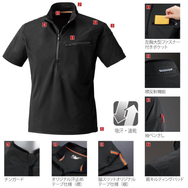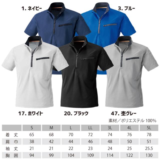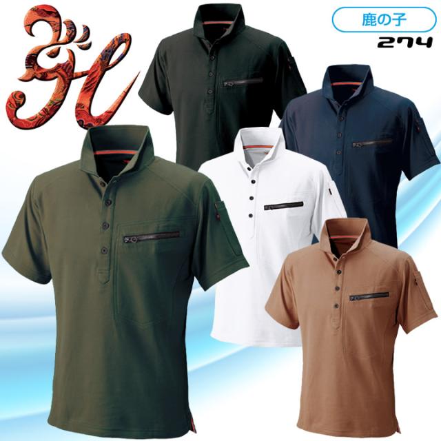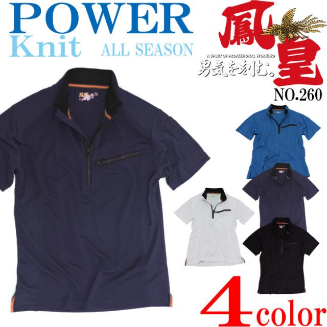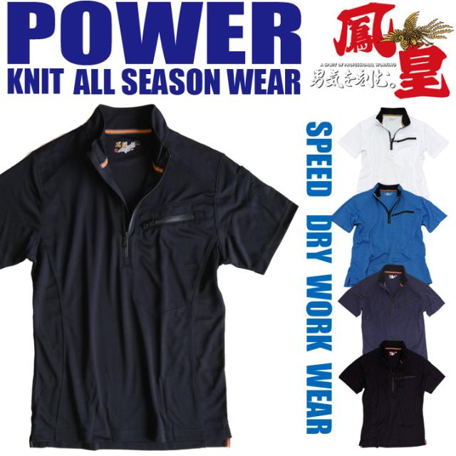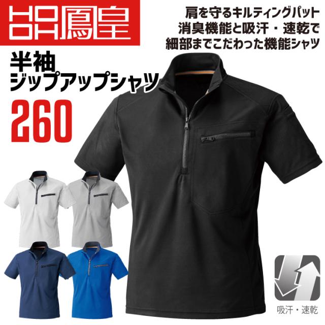 半袖シャツ ハーフジップ 刺し子補強付き 鳳皇 260 ジップアップポロシャツ 吸汗速乾素材 半袖 ポロシャツ 涼しい 清涼感 爽やか 【村上被服】【春夏】