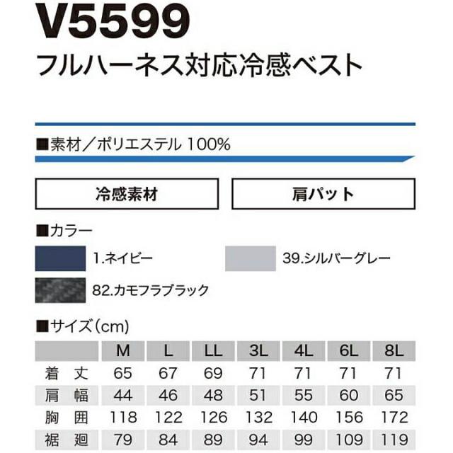 ファン対応ウェア 冷感ベスト フルハーネス対応 V5599 快適ウェア 肩パット
