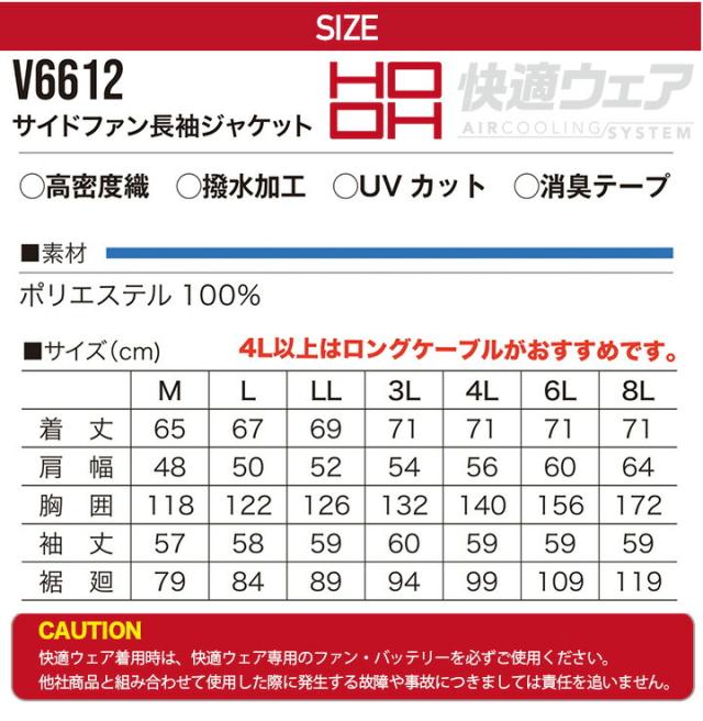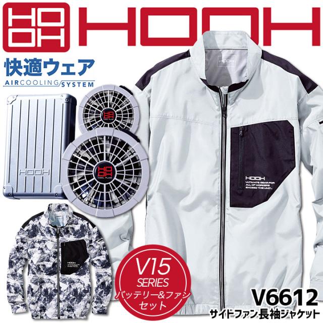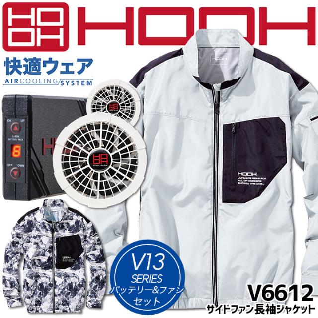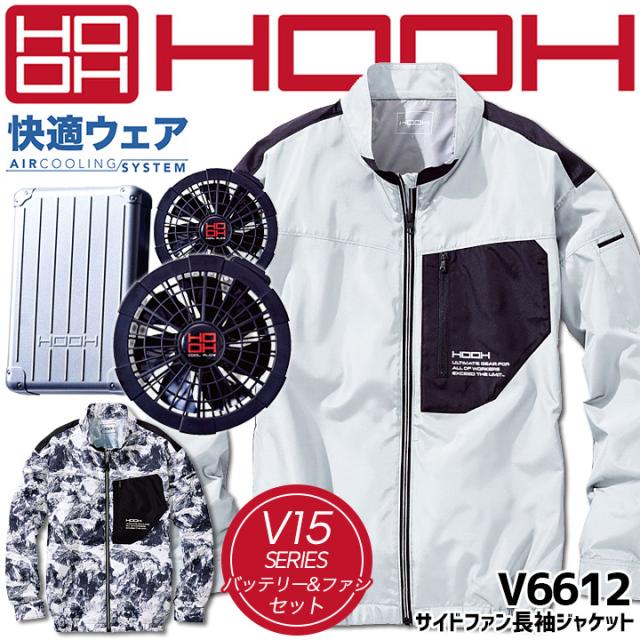 【即日発送】サイドファン 長袖ジャケット ファン対応ウェア V6612【服のみ】 快適ウェア 春夏 熱中症対策 高密度織 撥水加工UVカット 消臭テープ 電動ファン対応作業服 作業着 鳳凰 HOOH 村上被服