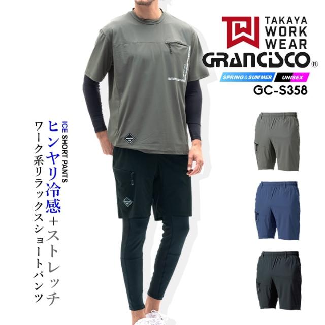 【即日発送】ショートパンツ 冷感パンツ グランシスコ GC-S358 作業服 アイスショートパンツ ナイロン ストレッチ ひんやり 短パン 接触冷感 ドライ素材 春夏 リラックスフィット ズボン メンズ 自転車 移動 アウトドア 作業着 GRANCISCO タカヤ商事