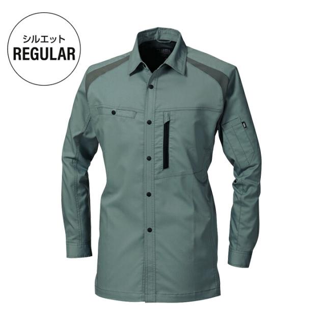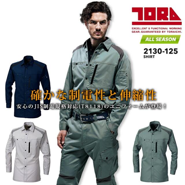 寅壱 長袖シャツ 作業服 2130-125 オールシーズン 作業服 作業着 ストレッチ 制電 軽量 トライチ