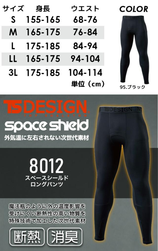 TSデザイン インナーパンツ ロングタイツ 防寒 冬用 ストレッチ TS-DESIGN 8012 保温 消臭 断熱性 ロングパンツ