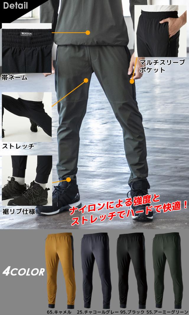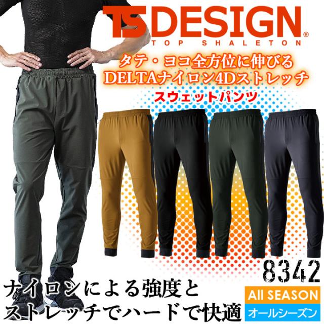 TSデザイン テックパンツ ストレッチ スウェットパンツ 8342 TS DELTA オールシーズン 男女兼用 メンズ レディース 高強度 吸水速乾 反射 撥水 ズボン 作業服 作業着 スポーツ TS-デザイン 藤和 TS-DESIGN