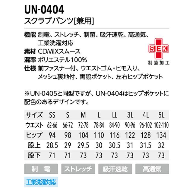スクラブパンツ 兼用 UNITE UN-0404 ズボン 裏地付き 医療 白衣 看護師 医師 ドクター クリニック 病院 メンズ レディース 制電 ストレッチ 制菌 吸汗速乾 高通気 工業洗濯対応 ユナイト 【送料無料】