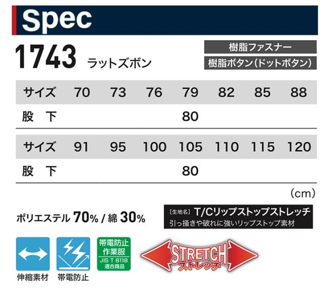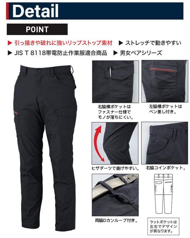 ジーベック ラットズボン 1743 ストレッチ 制電 ストレッチ 伸縮 帯電防止 男女兼用 ズボン カーゴパンツ メンズ レディース 作業服 作業着 XEBEC