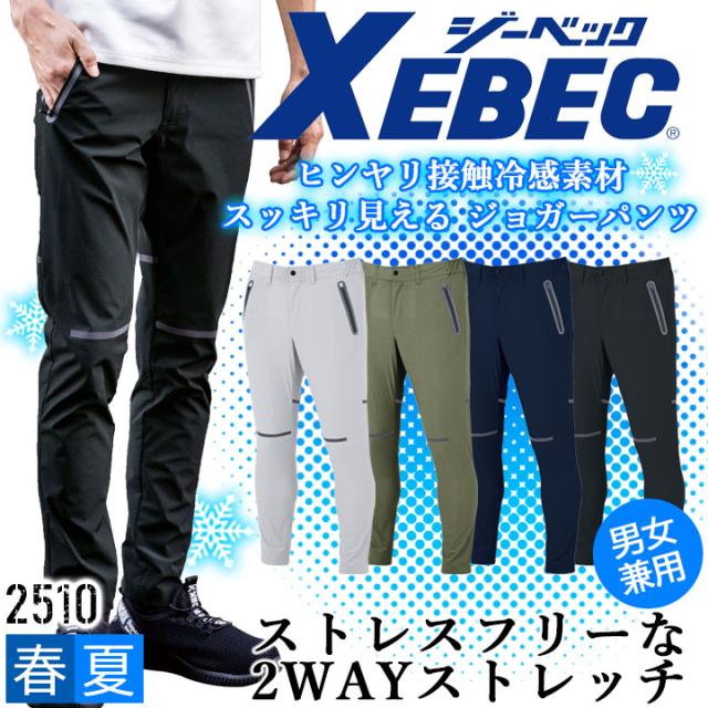 ジョガーパンツ 接触冷感 ジーベック 2510 春夏 涼しい ストレッチ 通気性 吸汗性 速乾性 作業服 作業着 XEBEC ズボン 男女兼用 ユニフォーム カジュアル