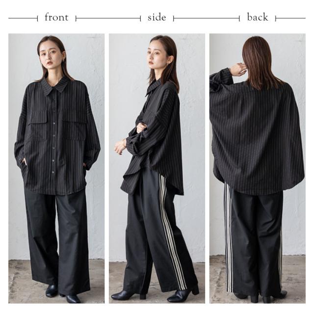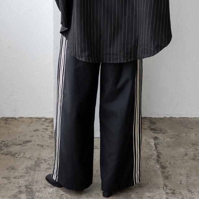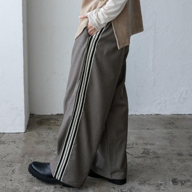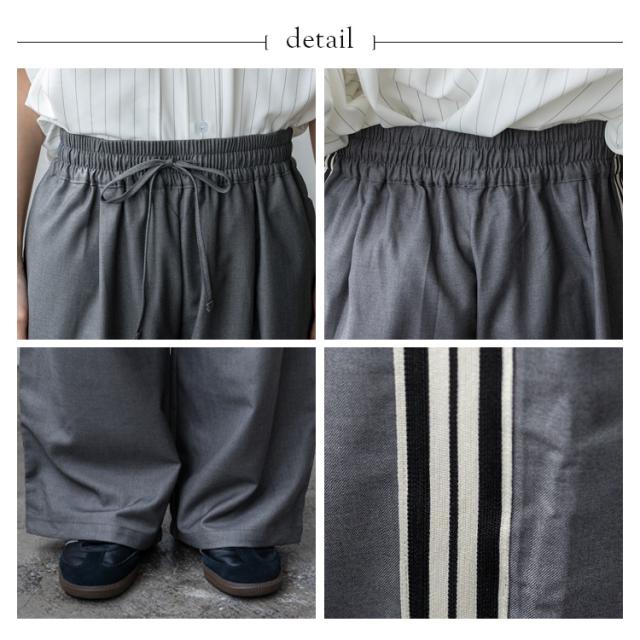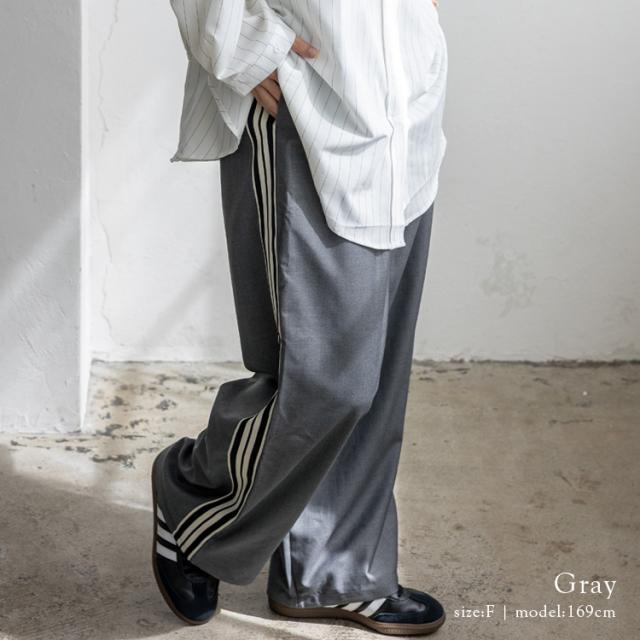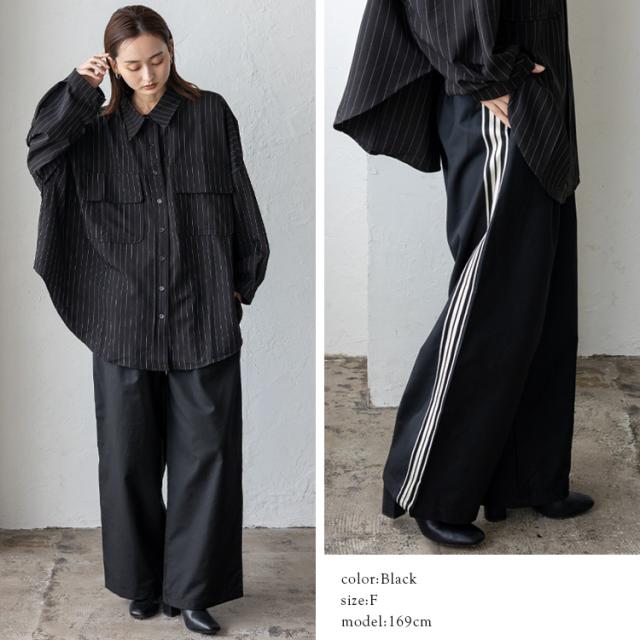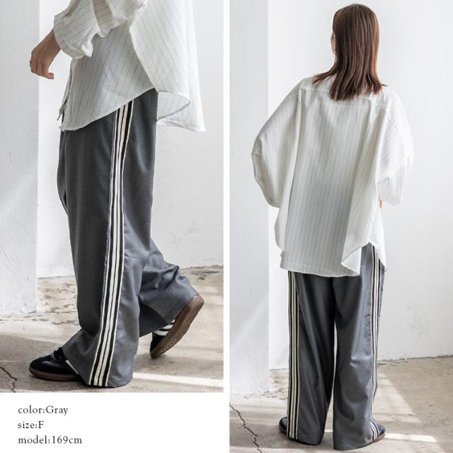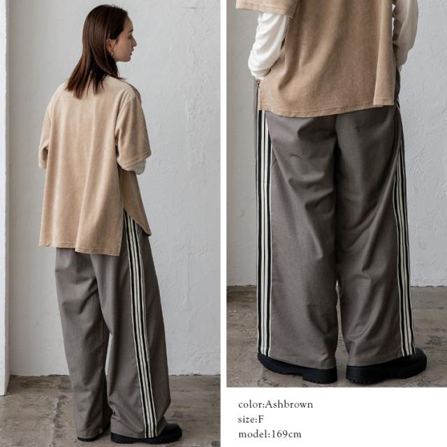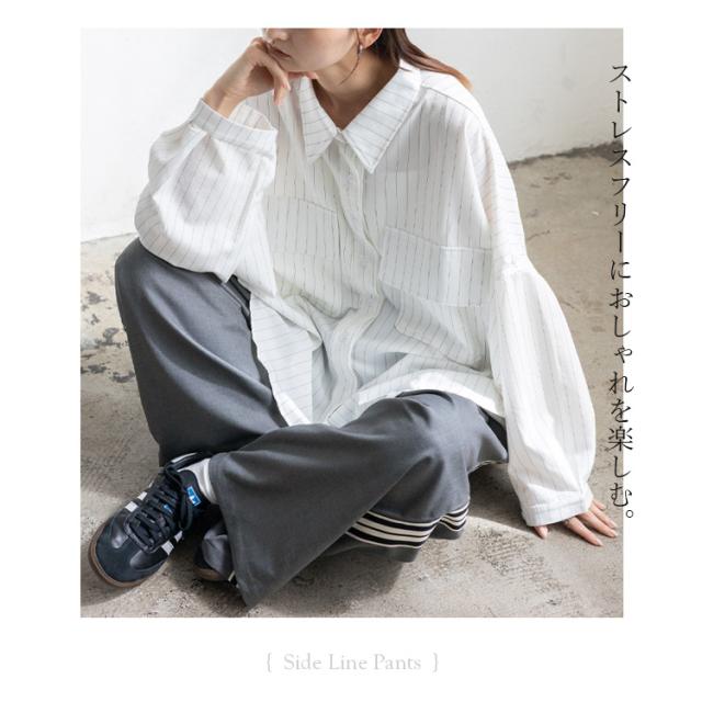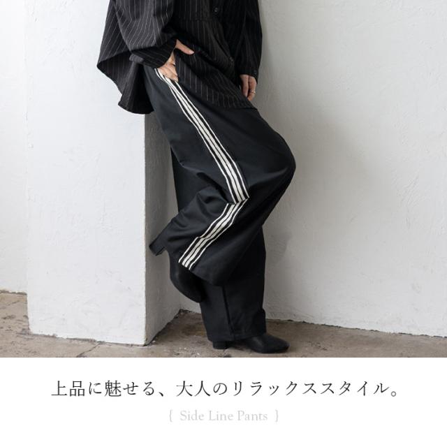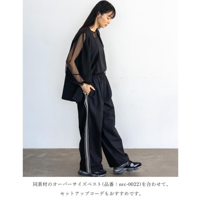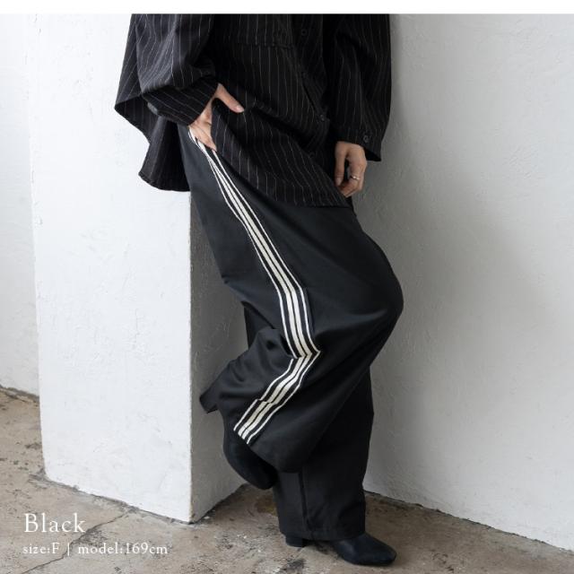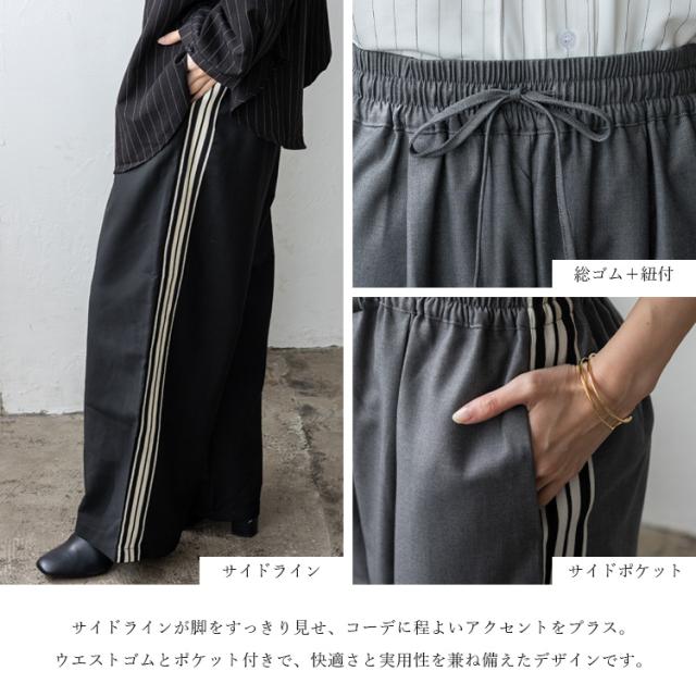 サイドライン パンツ レディース ワイドパンツ 大きいサイズ ウエストゴム 紐 ロング丈 ゆったり ストレッチ オーバーサイズ イージーパンツ 配色ライン きれいめ おしゃれ 大人カジュアル メンズライク 【メール便】 nrc-0021 【No Rule No Line】