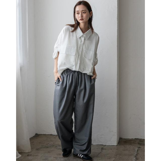 動きのあるワイドストレートシルエットが、こなれ感と脚長効果を両立。自然な抜け感をプラスします。