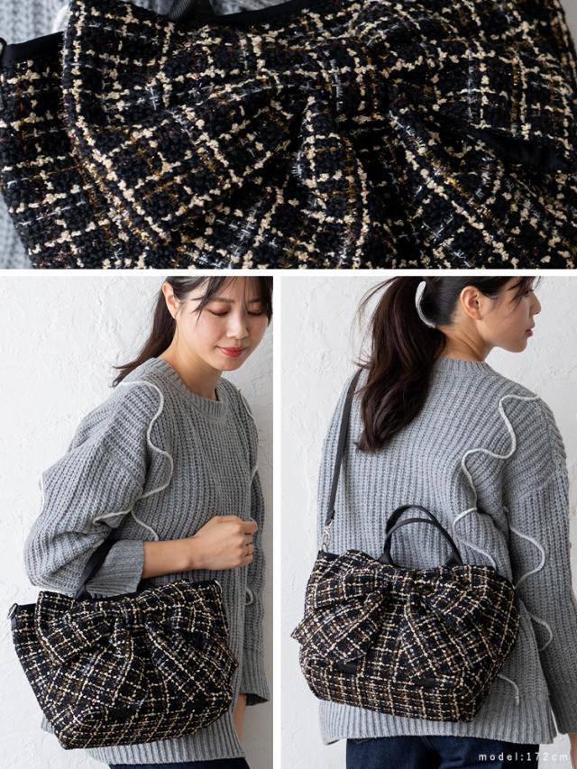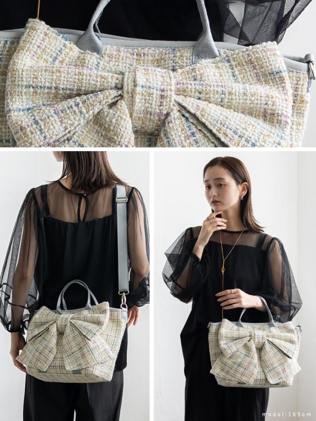 トートバッグ レディース 軽量 ネオプレーン バッグ 通勤 通学 ツイード コルク 肩掛け 斜め掛け 2way リボン ダイバー素材 ネオプレン リボントートバッグ リボンバッグ 女性 上品 ubb-sp-0340 プレゼント