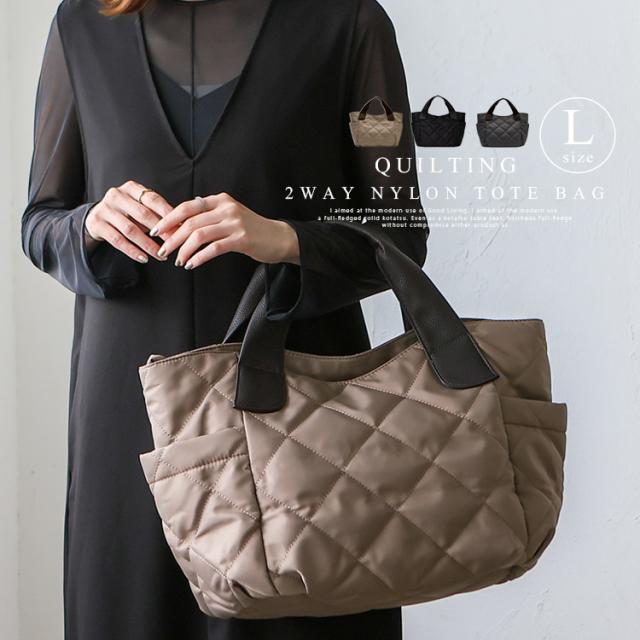 大きめのキルティングが女性らしい2wayビッグトートバッグ。