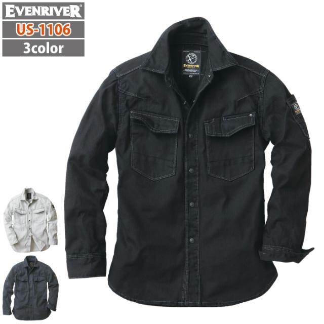 イーブンリバー EVENRIVER 作業服 US-1106 フィッシャーストライプシャツ M-LL 秋冬用 作業着 おしゃれ