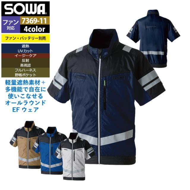ファン付きウェア(服のみ) 桑和 SOWA 作業服 7369-11 半袖EFブルゾン 8L 作業着 春夏