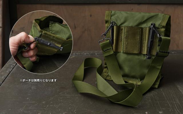 耐摩耗性に優れたナイロン製のストラップです。多目的用として支給されていたため、両端にシンプルなつくりのスプリングフックが付けられています。フィールドパック、ダッフルバッグ、ボストンバッグ、ハンドバッグ、などフックやDカンが付いていればショルダーストラップとして使用することが可能。別売りのFIRST AID KITポーチと組み合わせてミニショルダーとして使用するのもおすすめです。