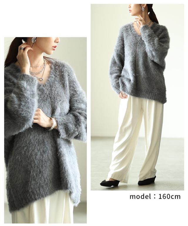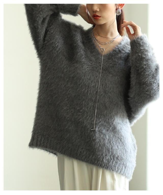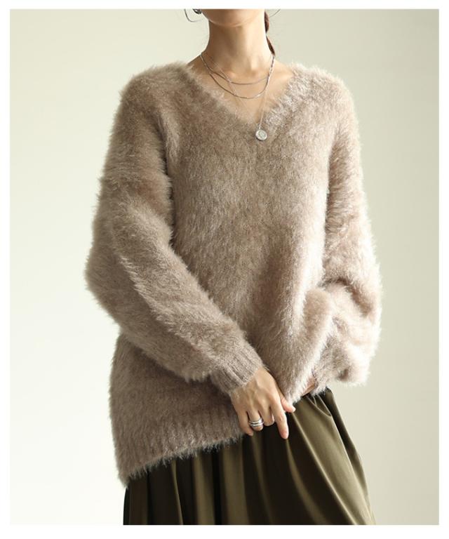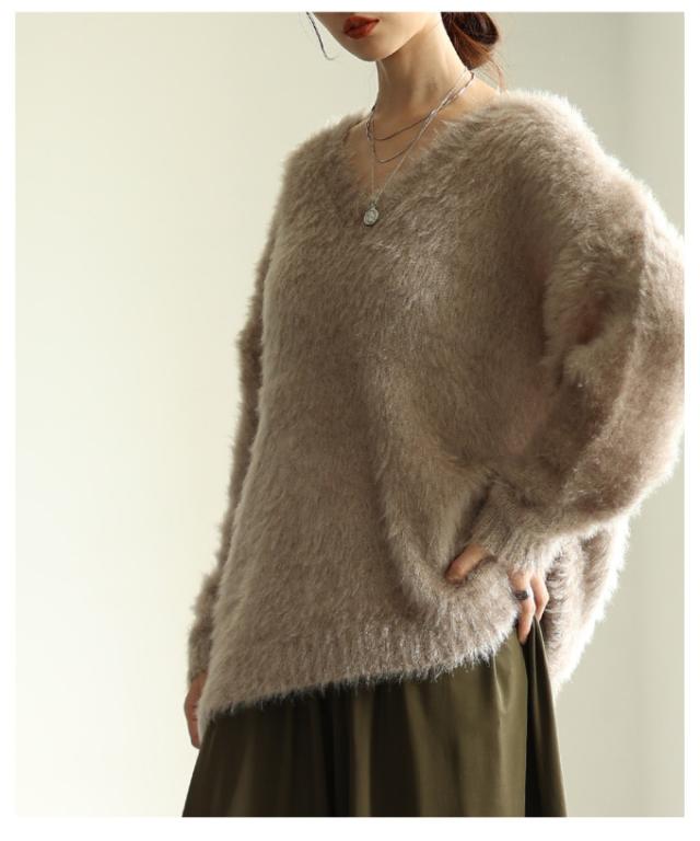 冬新作 ふんわり心地よいネコヤーンVネックニットプルオーバー レディース ファッション トップス ニット セーター 秋 秋服 大人可愛い 20代 30代 40代 レディースファッション カジュアル 体型カバー おしゃれ きれいめ ママ サワアラモード sawaalamode aldt-841r1567