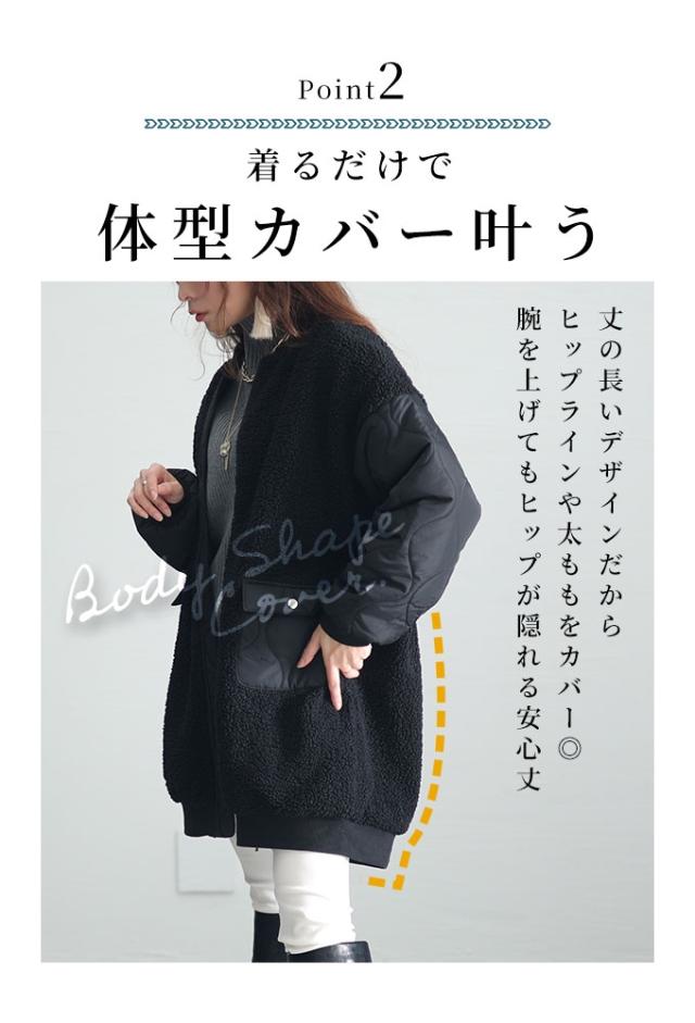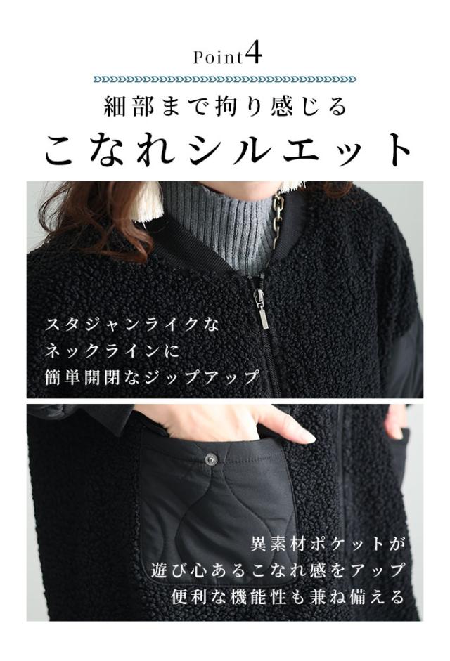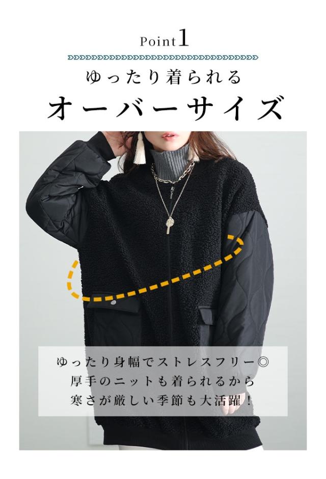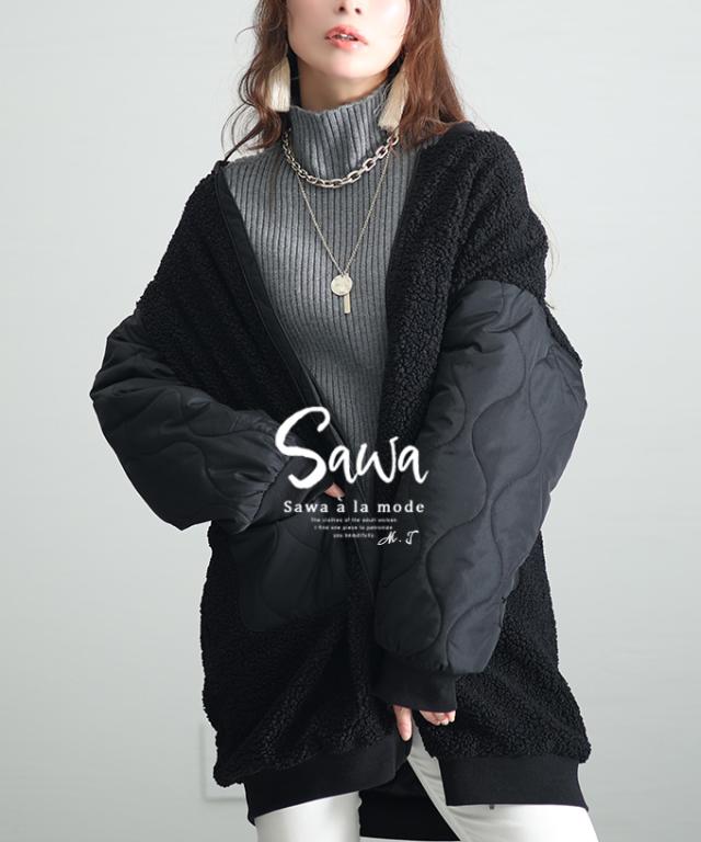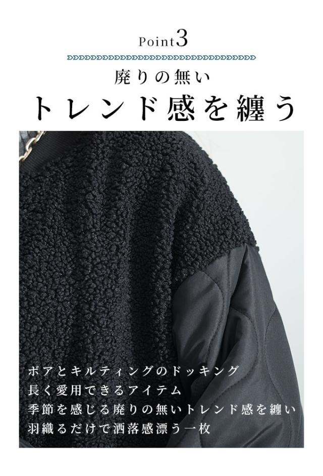 冬新作 デイリーに活躍するボア×キルティングジャケット レディース ファッション アウター ボア キルティング ジャケット 中綿 ジップアップ 異素材 ブラック 30代 40代 50代 60代 サワアラモード sawaalamode otona 大人 cawaii 可愛い 洋服 かわいい服 swkt-7843113