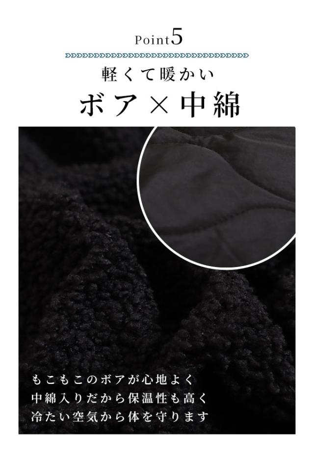特徴: ボア キルティング ベースボールカラー ジップアップ 中綿 異素材 リブ ポケット フラップ 裏地
