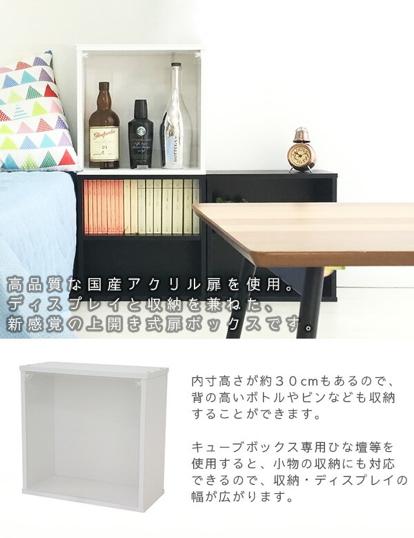 薄型 キューブボックスα アクリル透明扉付き 浅型 スリム コレクションケース 卓上 アクリル 扉付き 収納 フィギュアケース おしゃれ 木製 薄型収納棚 激安 安い