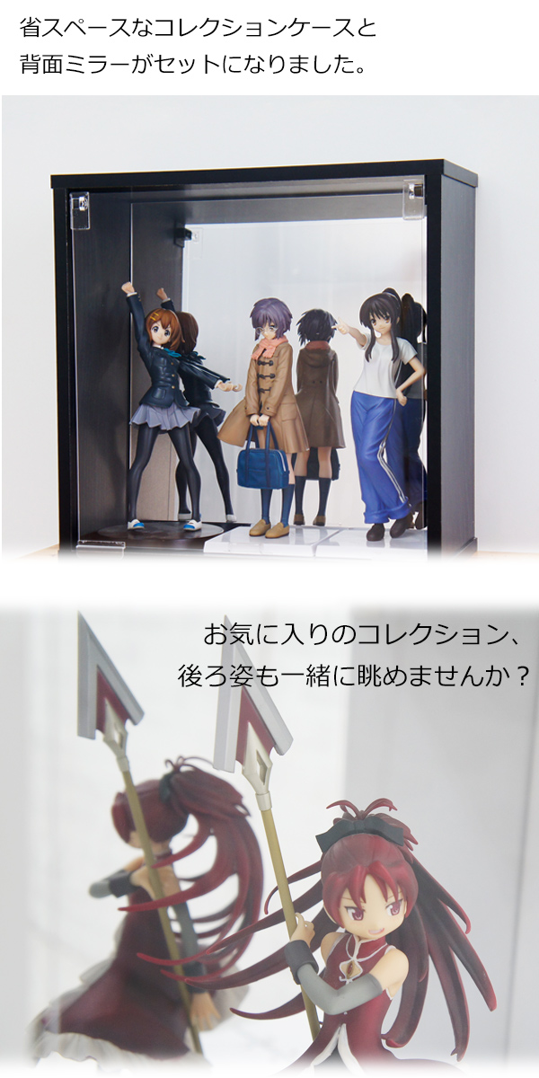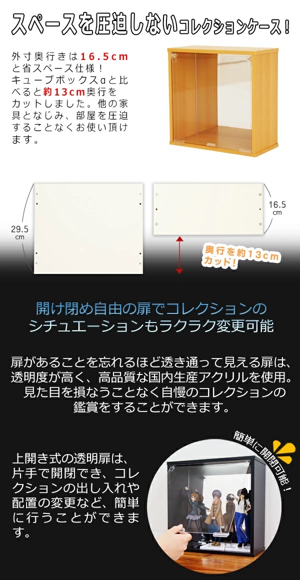 背面ミラー付き フィギュアケース キューブボックスαハーフ アクリル透明扉タイプ 薄型 コレクションケース 卓上 アクリル スリム 木製 激安 安い フィギア 棚 収納